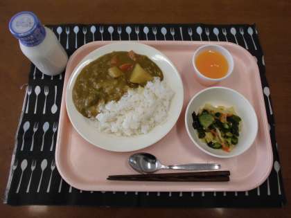 カレーライス・牛乳・和風サラダ・キャロットゼリー です。