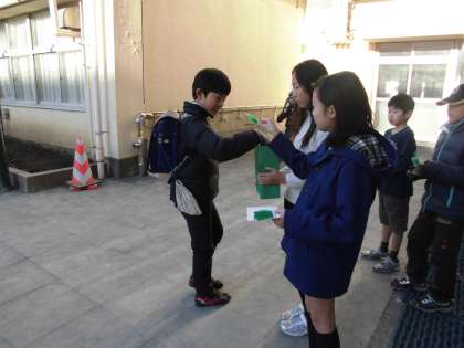 1月20日(水)から23日(金)の3日間、環境整備委員会の児童が「緑の募金」活動を行いました。