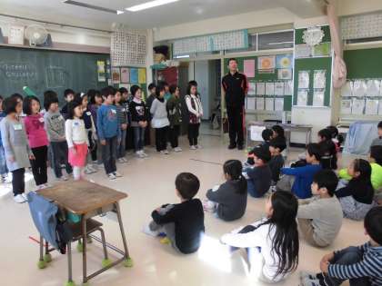 2学期の「なかよしあそび大会」は2学年で行いましたが、今回は2年1組と1年1組のように、兄弟学級ごとに行いました。
