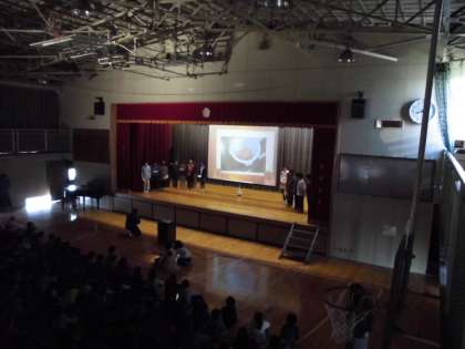 絵本「しんでくれた」を委員会の子どもたちが朗読し、動物たちの尊い命を毎日いただきながら私たちは生きていることに気づき、食べ物のありがたさを学び、給食を残さず食べる気持ちを高めました。
