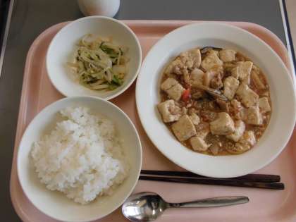 ごはん、牛乳、ジャージャンどうふ、白菜の中華サラダ、です。