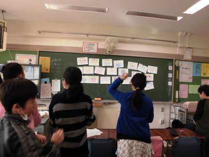 6年生は、一人一人が自分の追い出したい鬼を考えて豆まきをしました。
