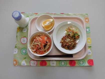 かき揚げには、さつまいも・玉ねぎ・にんじん・もずくを入れて仕上げました。