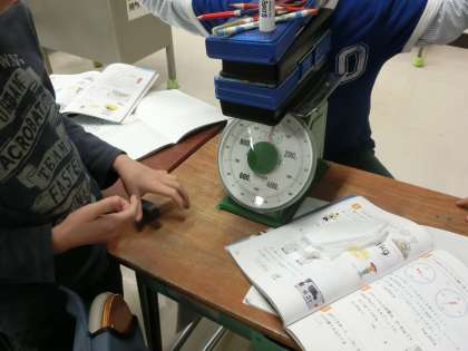 今、算数では「重さ」の学習をしています。