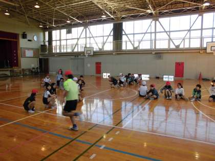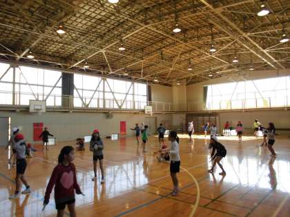 間もなく卒業練習が始まるため、体育館での体育も最後が近づいてきています。今は、体づくり運動として、短なわ跳びや鬼遊び、マットを使った運動をしています。