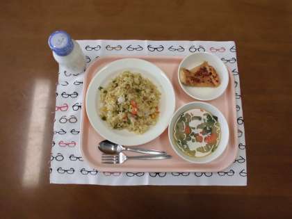 メキシカンライス・牛乳・タンドリーチキン・野菜スープ です。