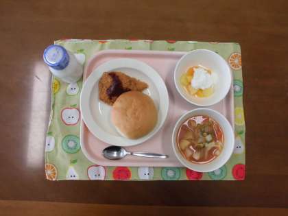 セルフフィッシュサンド・牛乳・ミネストローネスープ・