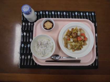 ごまごはん・牛乳・鶏肉とコーンの揚げ煮・黒蜜寒天 です。
