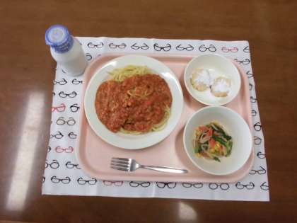 スパゲティーミートソース・牛乳・小松菜サラダ・