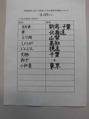 今日で今年度の給食は最後です。進級と卒業のお祝いに、今日はお赤飯です。お赤飯は日本人が古くから祝い事に食べてきたものです。デザートの目玉焼き以外は〈はし〉だけで食べる献立です。