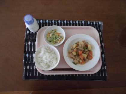 ごはん・牛乳・肉じゃがうま煮・野菜のごま酢あえ です。