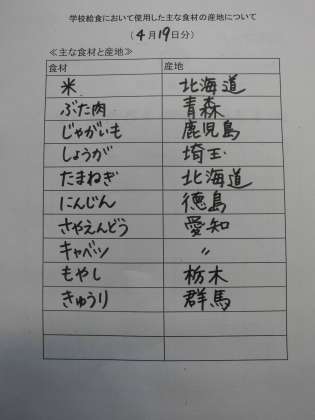 肉じゃがうま煮は主役の食材が2つ。ひとつはじゃがいも。今日は「新じゃが」を使っています。冬に植えて3〜6月頃に収穫されたものをいいます。普通のじゃがいもに比べて皮が薄いのでよく洗ったらむかなくても調理して食べられますが、給食ではやはりむいてから使います。もうひとつは肉です。肉じゃがに使う肉は地域によって違うようです。関東は主に豚肉を、関西は牛肉だそうです。中丸小では豚肉を使っています。皆さんのご家庭ではどうですか。