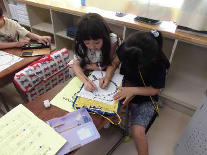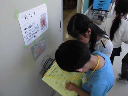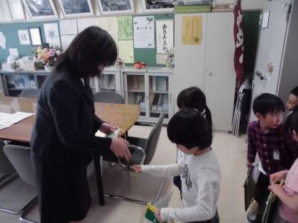 2年生に、校内を案内してもらいました。行ったことない教室に連れて行ってもらい、どんなことをする教室なのか教えてもらいました。学校には、いろいろな教室があり、たくさんの先生がいらっしゃることを学びました。「2年生が、手をつないで優しく教えてくれてうれしかった。」という声も聞こえてきました。頼りになるお兄さん、お姉さんのおかげで、中丸小学校がますます大好きになりました。