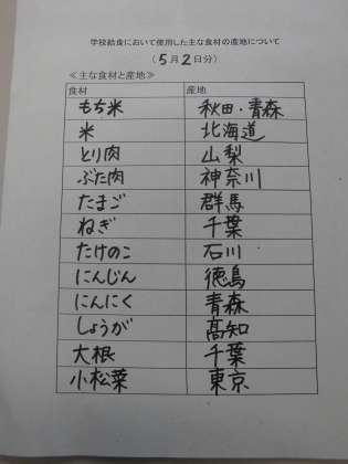 今日の中華おこわに使った“たけのこ”は生のものを給食室でゆでたものです。中丸小のみんなが心温かく元気に育つことを給食室のみんなの願いです。