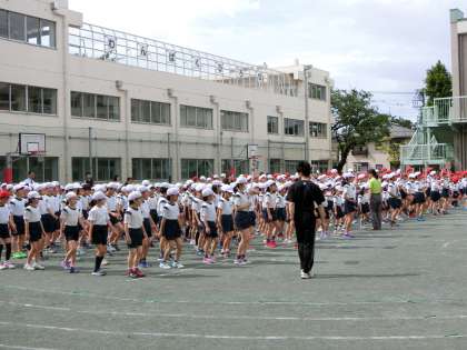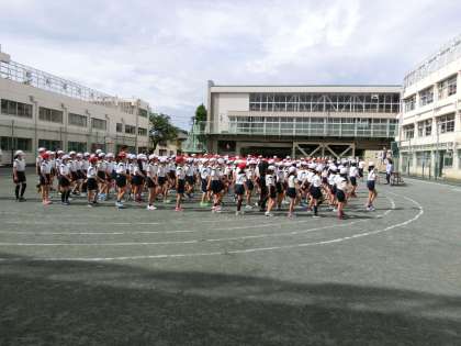 今日は校庭で体育朝会でした。運動会開会式の練習で、行進をしました。合図の音と足踏みのタイミングや横列を揃えることを意識しました。足並みが、一段とそろってきました。練習の成果を運動会で発揮できるようにしたいですね。