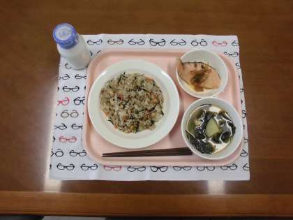 豆入りひじきごはん・牛乳・魚の南蛮焼き・みそ汁 です。