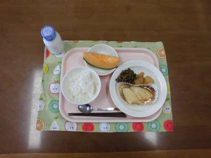 じゃがいもの甘辛煮・果物(メロン) です。