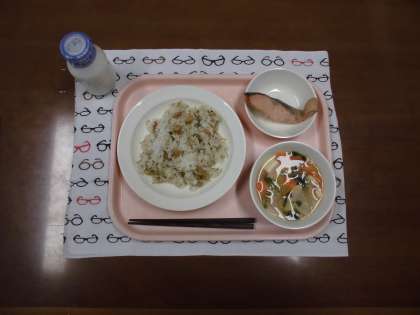 豆ごはん・牛乳・魚の西京焼き・吉野汁 です。