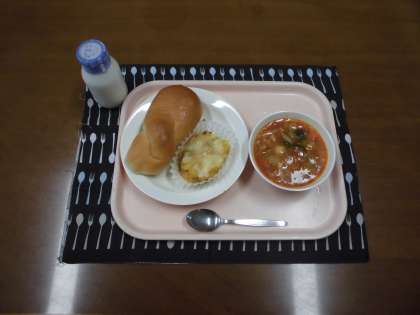 ショートニングパン・牛乳・ポテトグラタン・ミネストローネスープ