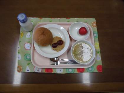 丸パン・牛乳・コロッケ・かぶのスープ・果物(プラム) です。