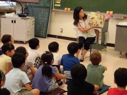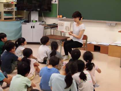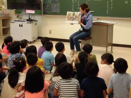 毎月、図書ボランティアの方々に、全校一斉読み聞かせをしていただいています。