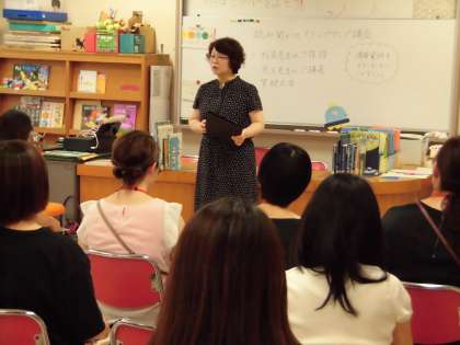JPIC読書アドバイザーの児玉ひろ美様をお迎えして、発達段階においてどのような本を読ませたらよいか,興味深く聞くことができました。科学絵本の読ませ方や高学年への読み聞かせの仕方・選書など具体的なお話をしていただきました。2時間があっという間に終わってしまいました。