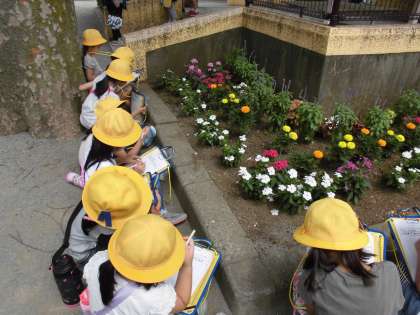 「野沢三丁目町会の方がお花を植えてくれているよ。」