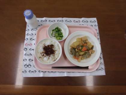 ごはん・牛乳・かつおでんぶ・豆入り筑前煮・きゅうりのひとしお