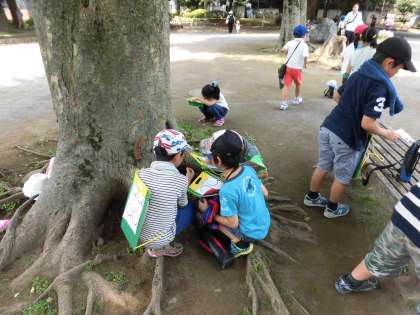 公園では、いろいろな生き物を見つけて、みんな大喜び!