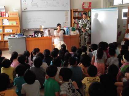 図書館司書による、「こわ〜い」話の読み聞かせ会が、図書室で開かれました。