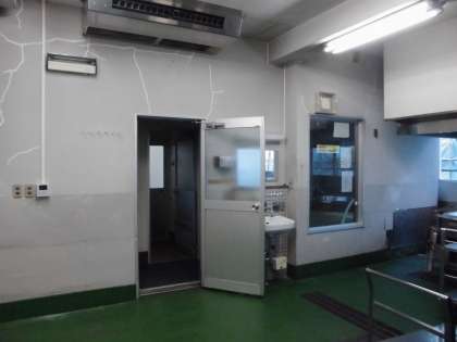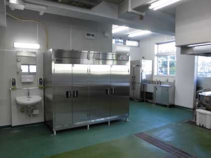 下の写真は、ほぼ同じ場所から撮った給食室内です。