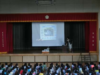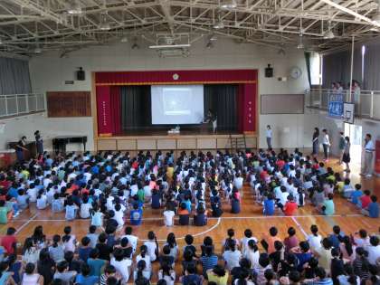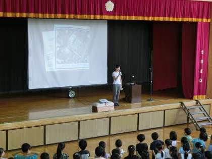 今日の全校朝会では、校長先生から65周年記念の写真の紹介がありました。