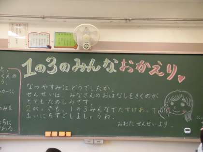 9月1日。担任が教室で子どもたちを出迎えたのは、もちろんですが、久しぶりに登校してくる子どもたちへの熱いメッセージ・思いが黒板に書かれていました。