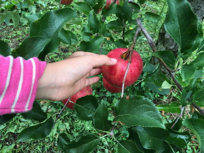 次に農園の方からりんごのお話を聞き、いよいよりんご狩りです。
