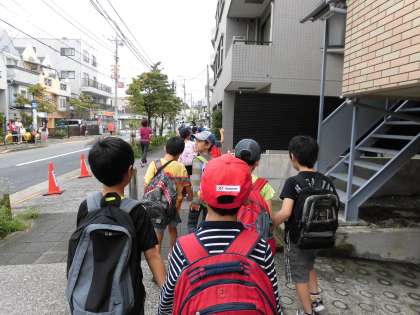 天候が心配されましたが、学校から世田谷郵便局まで歩いて、郵便局見学に行きました。郵便局に到着し、まず郵便局の方のお話を聞きました。