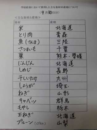 今日は9月最後の給食です。そして秋いっぱいの給食です。