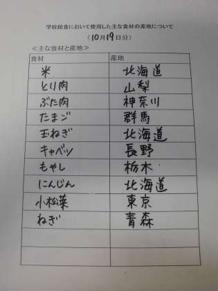 10月19日(水)の給食