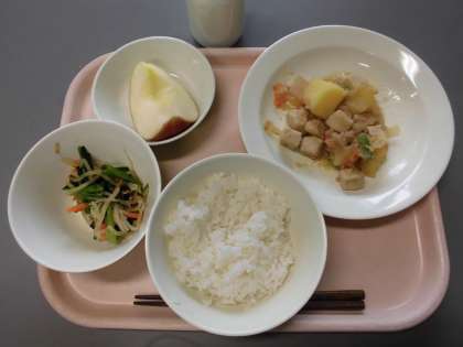 ごはん・牛乳・じゃがいものそぼろ煮・おひたし・果物(りんご)