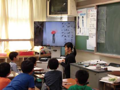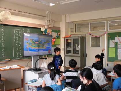 1年生は、教科「日本語」で、詩の情景を思い浮かべるための資料を映しました。