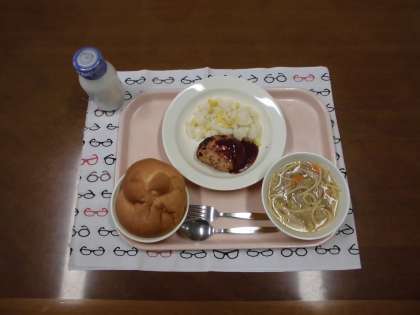ショートニングパン・牛乳・アップルチーズハンバーグ・コーンポテト