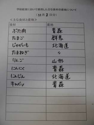 読書週間に合わせた献立、5回目の今日は「月ようびはなにたべる?」から入れました。本来は曜日ごとに1つの食べ物がありますが、今日はまとめて3曜日分を取り入れました。