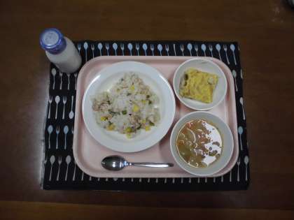 鮭ピラフ・牛乳・消えたファニィ入りオムレツ・コンソメスープ