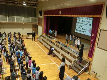 学芸会で歌う「幕をあける歌」の練習をしました。