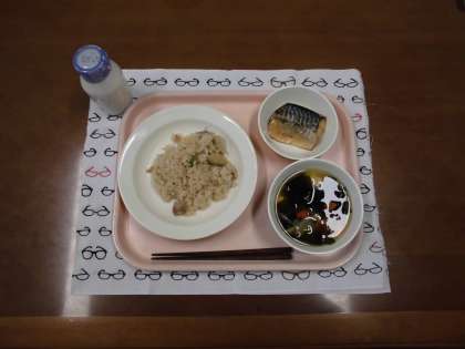 里芋ごはん・牛乳・魚の生姜風味焼き・すまし汁 です。