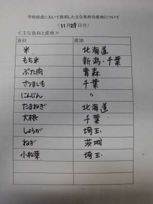 11月23日は勤労感謝の日です。給食を例にすると、滞りなく食事を出すために、みんなの見えないところで努力や苦労があることをわすれてはいけません。
