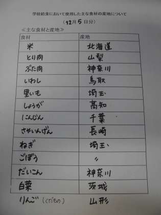 つみれ汁は、今日はいわしのすり身を使って作りました。いわしは体長15〜20cmくらい、大きいものは30cmにもなるそうです。普段水深20〜70cmくらいの場所で大群で回遊しています。平安時代の歌人、紫式部は実はいわしが好物だったといわれています。ビタミンDやカルシウムを多く含んでいるので、成長期にあるみんなには必要な食べものです。