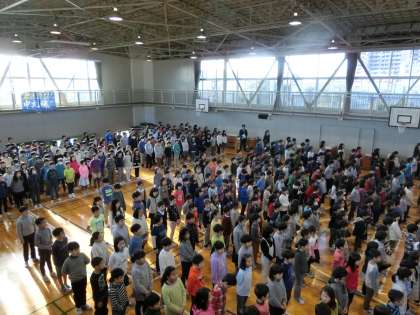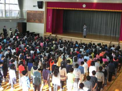3学期の始業式が体育館で行われ、冬休み明け元気な姿の子ども達が揃いました。