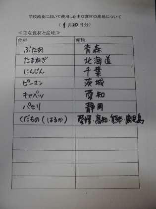 1月20日(金)の給食