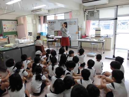 カメのポーズ、オートバイのポーズなど、1年生でも楽しく覚えながら洗えるコツを教えてもらいました。