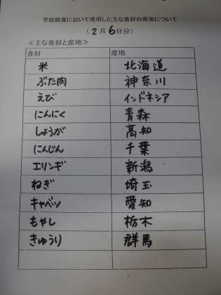 2月6日(月)の給食